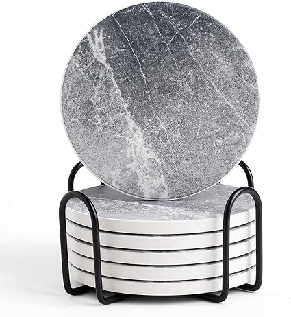 Lifver Coasters For Drinks Absorbent Ceramic Coasters Set Prevent Furniture From Dirty And Scratched Stone Coasters With Holder Set Of 6 Grey Coasters Not Marble Amazon Co Uk Kitchen Home