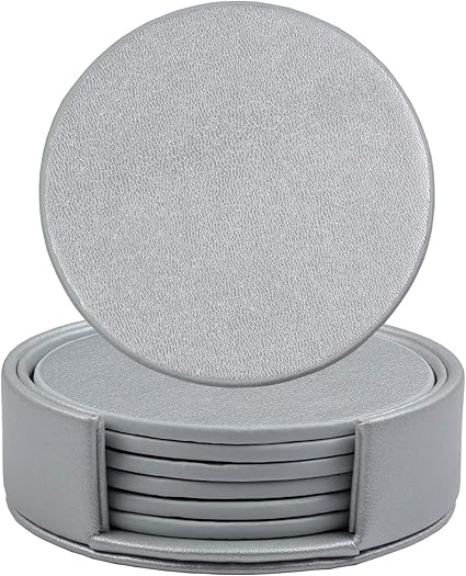 Homcomodar Coaster Pu Leather Non Slip Coasters With Holder For Drinks Protect Furniture From Scratch Spills Water Rings And Damage Silver Amazon Co Uk Kitchen Home